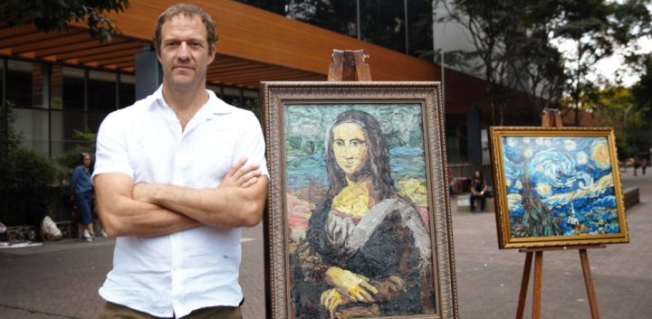 Em 2019, comecei esta série composta unicamente de sacolas plásticas recolhidas nas margens dos rios, ruas e cooperativas de reciclagem. Substitui os pincéis e a tinta a óleo por uma técnica inovadora que utiliza somente fragmentos plásticos, sem o uso de cola, tinta ou qualquer outro material para compor os trabalhos inspirados em pinturas famosas da História da Arte.